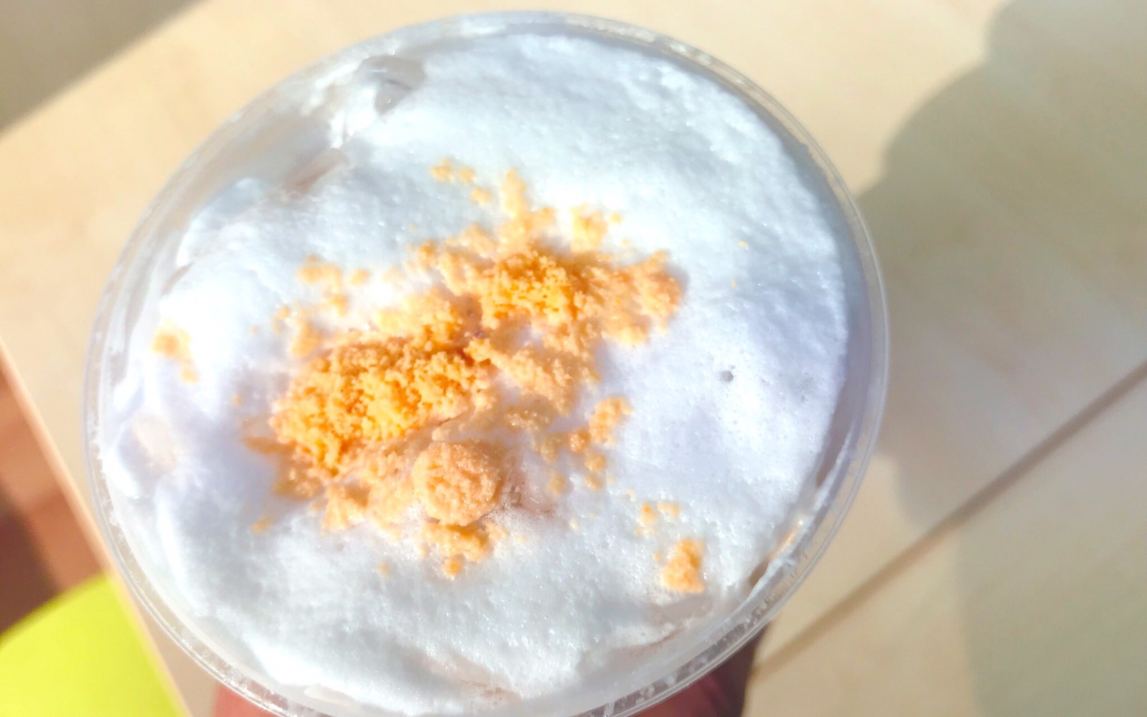 วันนี้ผมลองจัดเมนูลาเต้ไข่เค็ม คือความท็อปปิงด้วยผงไข่แดงเค็ม
