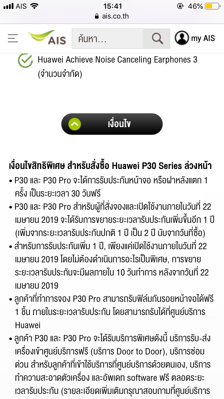 จองเครื่อง HUAWEI P30 Pro จาก AIS online แต่ไม่ได้รับเครื่อง