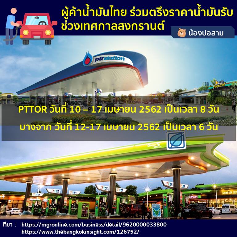 ปตท.-บางจาก ประกาศตรึงราคาน้ำมันช่วงสงกรานต์เป็นเวลา 8 วัน