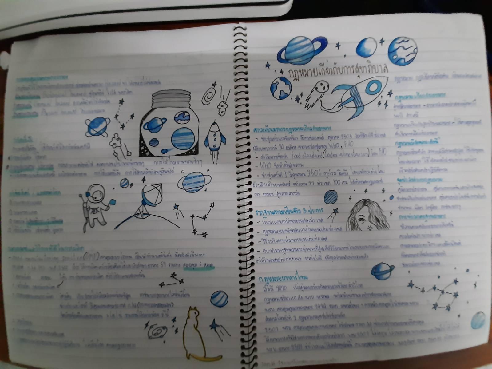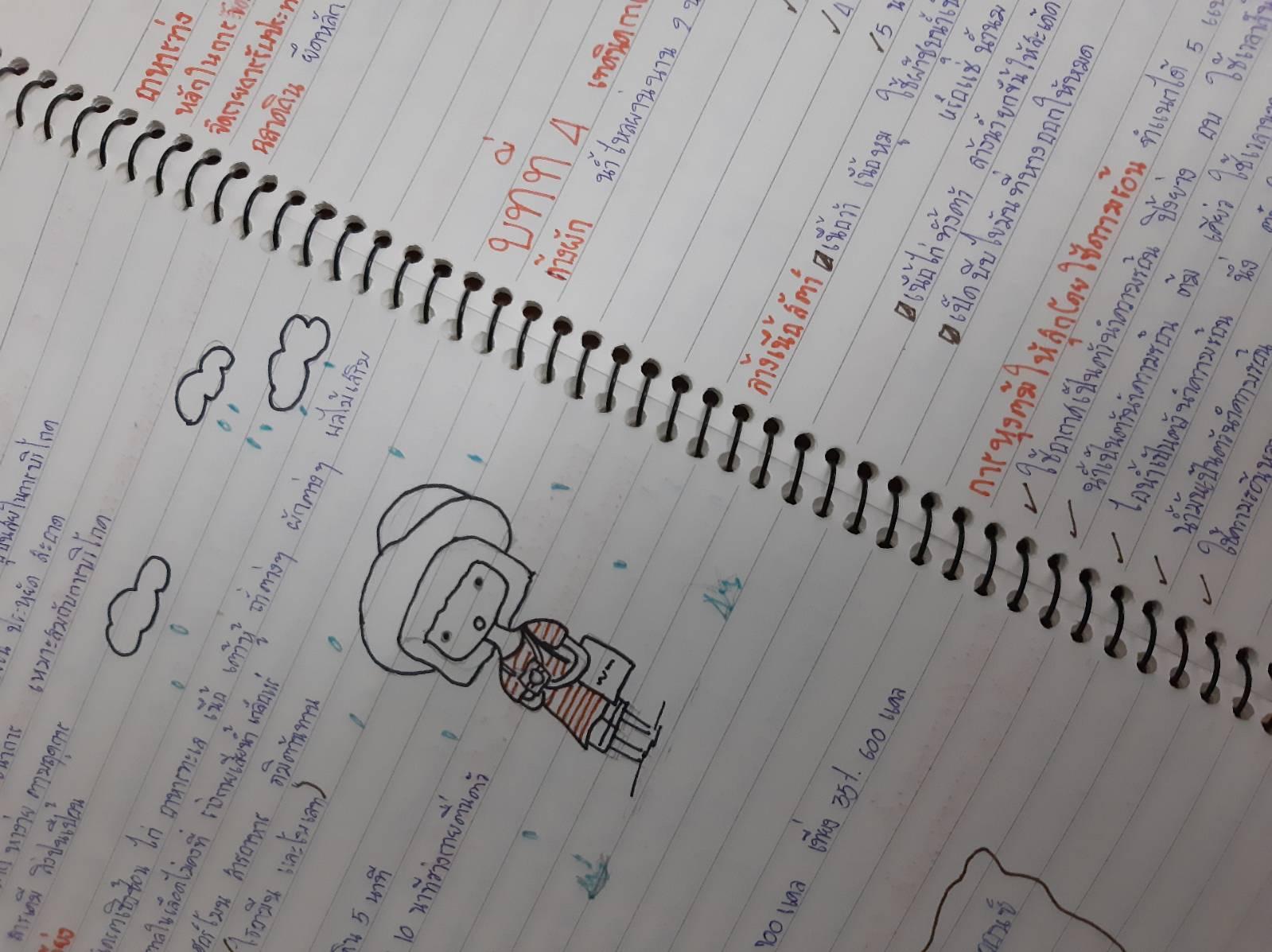 เป็นไงกันบ้างเพื่อนๆเห็นก็พอจะรู้กันแล้วหละสิว่าหลักการจดของเราเป็นแบบไหน เราขอเรียกมันว่าเป็นการจดที่มีรูปภาพมากกว่าเนื้อหาที่เรียน ก็อย่างที่รู้อ่านหนังสือเยอะมันง่วง วาดรูปไปด้วยสนุกกว่าเยอะ เรามีตัวอย่างของเราให้ดูไม่สวยมากแต่พอดูได้มาให้ดูกัน