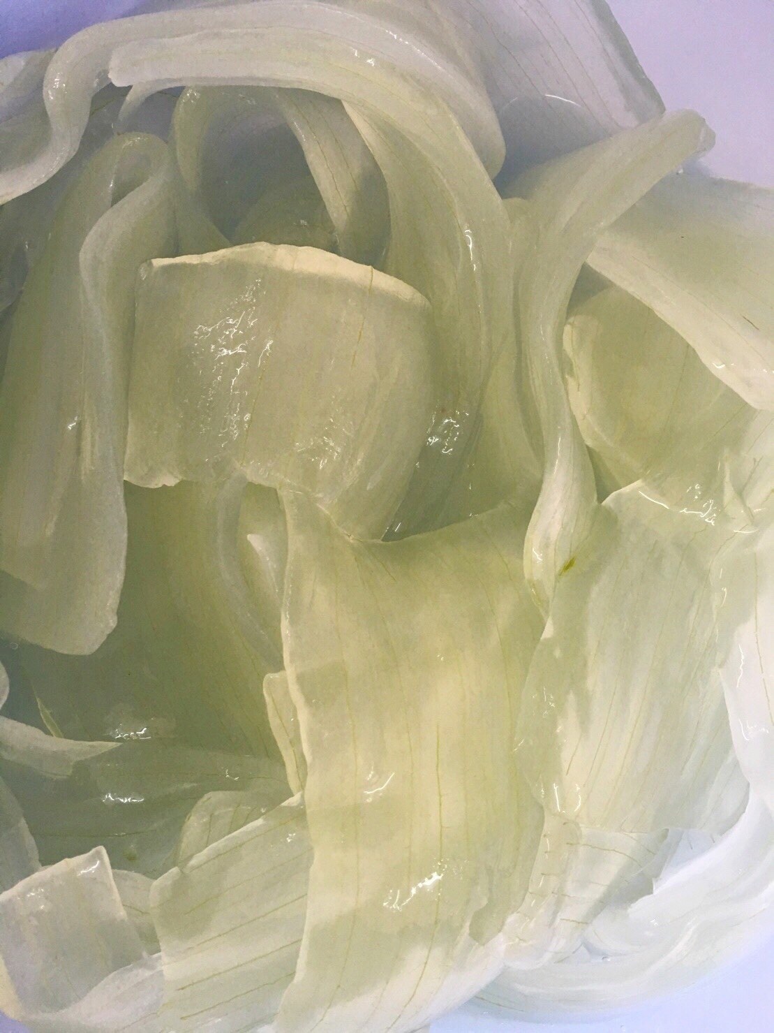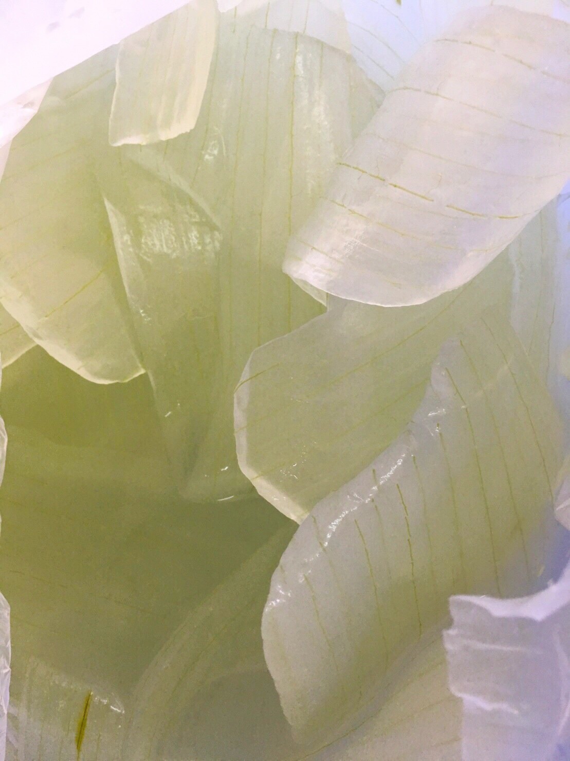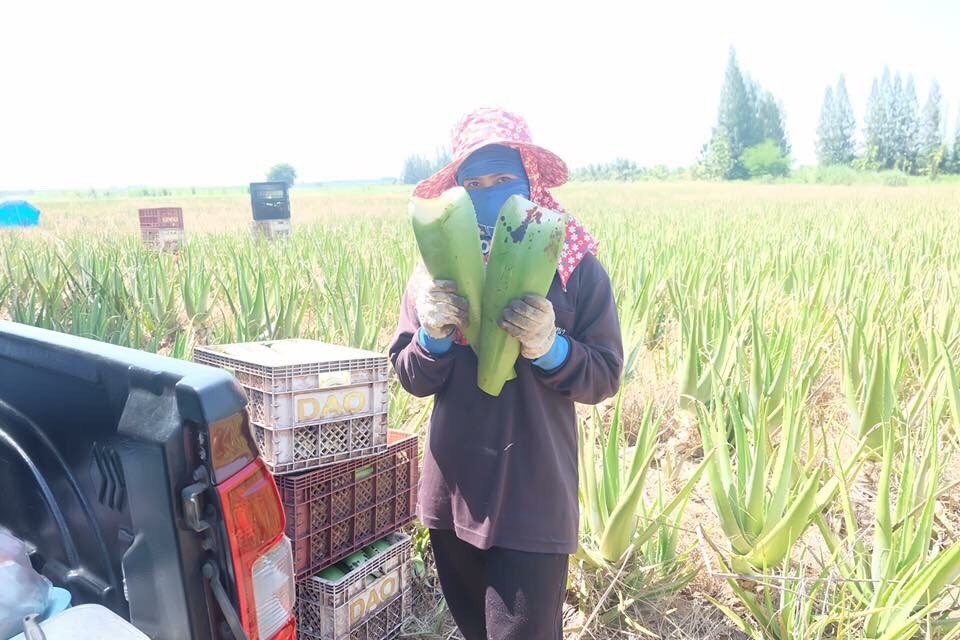 ว่านหางจระเข้จากชาวสวน นำมาปลอก ล้าง หั่น เพื่อนำมาเป็นส่วนผสมหลักของสูตรเจลว่านหางกะปอ