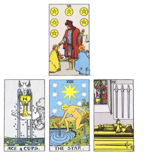 พอดีตอนนี้เรากำลังอยูาในช่วงศึกษาเรื่องไพ่ยิปซีอยู่ค่ะ ซึ่งเราก็ถามไปว่า คนคุยเก่าเขายังชอบเราอยู่มั้ย ซึ่งไพ่ทั้ง4ใบที่หยิบออกมา ก็ออกมาตามนี้เลยค่ะ เราพอจะรู้ความหมายเบื้องต้นบ้าง แต่ก็ยังไม่แน่ใจกล