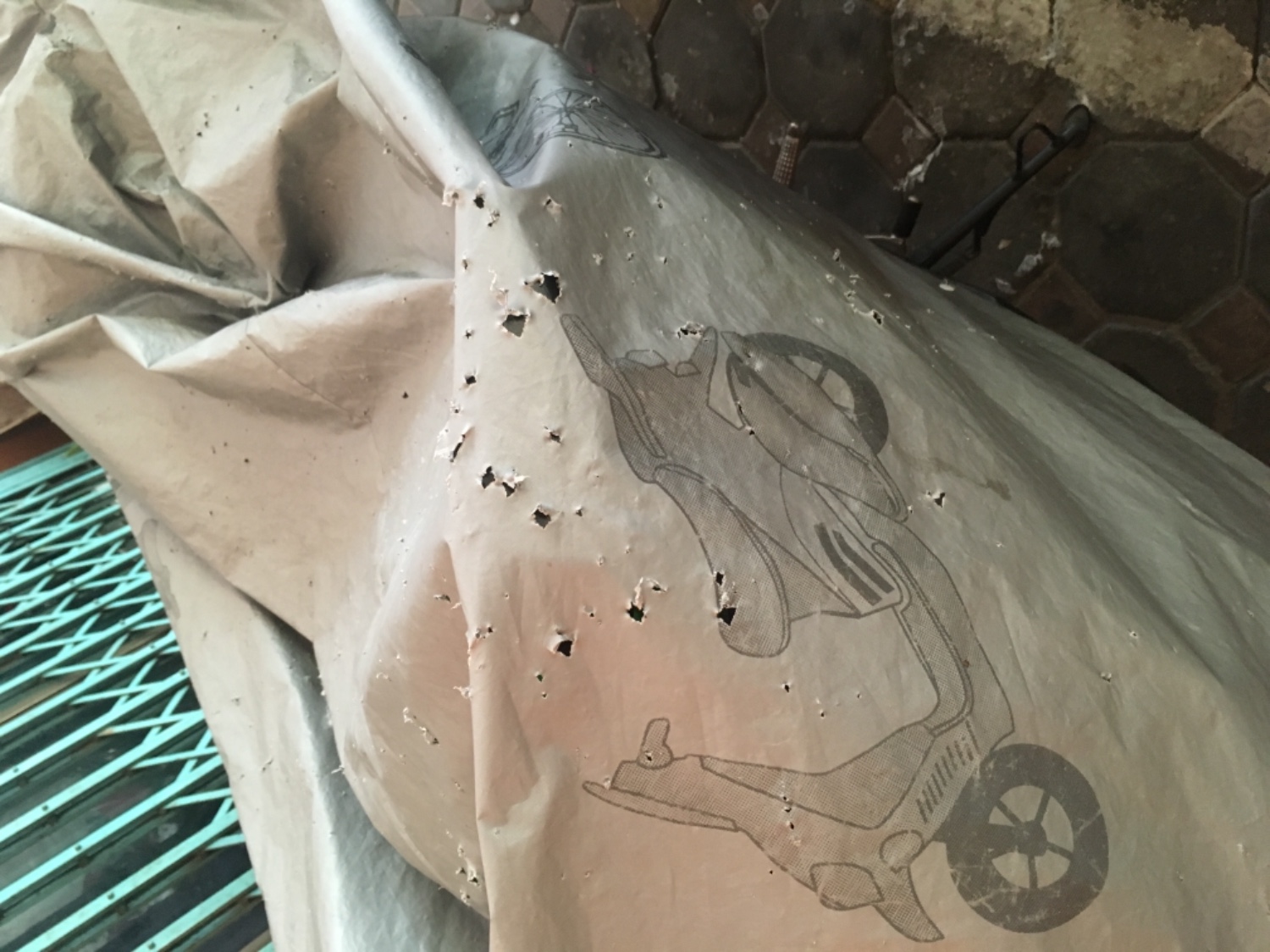 เจ้าแมวที่หอแฟนครับซนมาก มีเป็นแก็งค์ประมาณ 3-4 ตัว เห็นเบาะรถมอไซค์เราเป็นที่ฝนเล็บมัน ครั้งแรกยังพอให้อภัย แต่ก็มีครั้งที่สอง สาม สี่ ห้าตามมาให้เจ็บใจเล่น เอาซะยับเยินดูไม่ได้เลย ครั้นจะให้คลุมรถตล