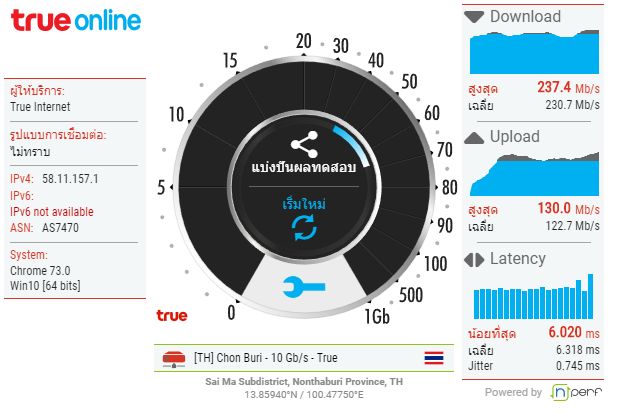 เน็ตบ้านทรู 300/300 test speed ที่ https://speedtest.trueinternet.co.th/ test speed ที่ https://fast.com/