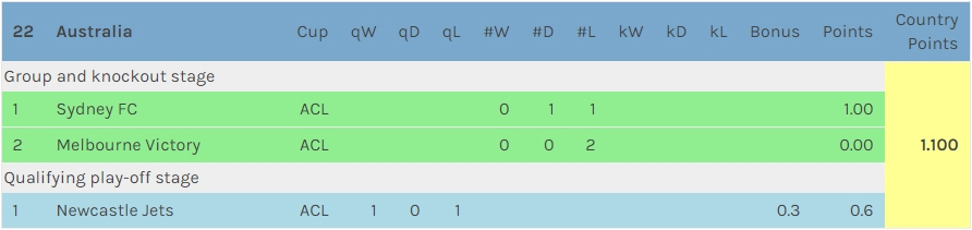 2019 ACL : Ranking นี่มันวัดกับผลงานได้จริงๆ ทีมจากออส แพ้ 1 ทีม เสมอ 1 ทีม รั้งบ๊วยกลุ่มทั้ง 2 ทีม + อัพเดทคะแนน