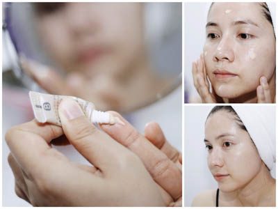 วิธีใช้ แต้มที่หน้าผาก จมูก แก้มทั้ง 2 ข้าง และคาง รวม 5 จุด ใช้ปลายนิ้วค่อยๆเกลี่ย และวนเป็นวงกลมให้ทั่วใบหน้ารวมทั้งบริเวณไรผม กรอบหน้า และปลายคางให้ทั่ว สามารถใช้ได้แม้บริเวณรอบดวงตา และริมฝีปาก