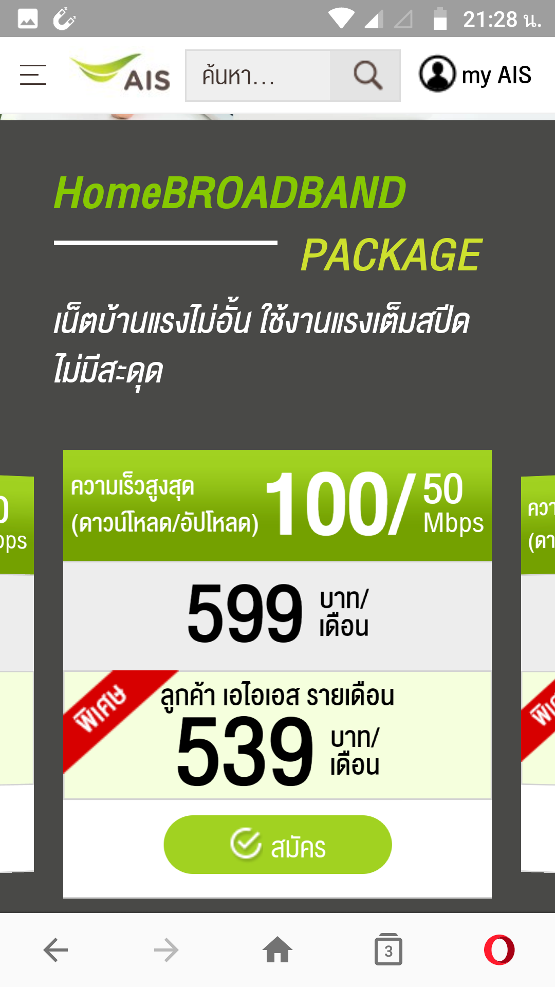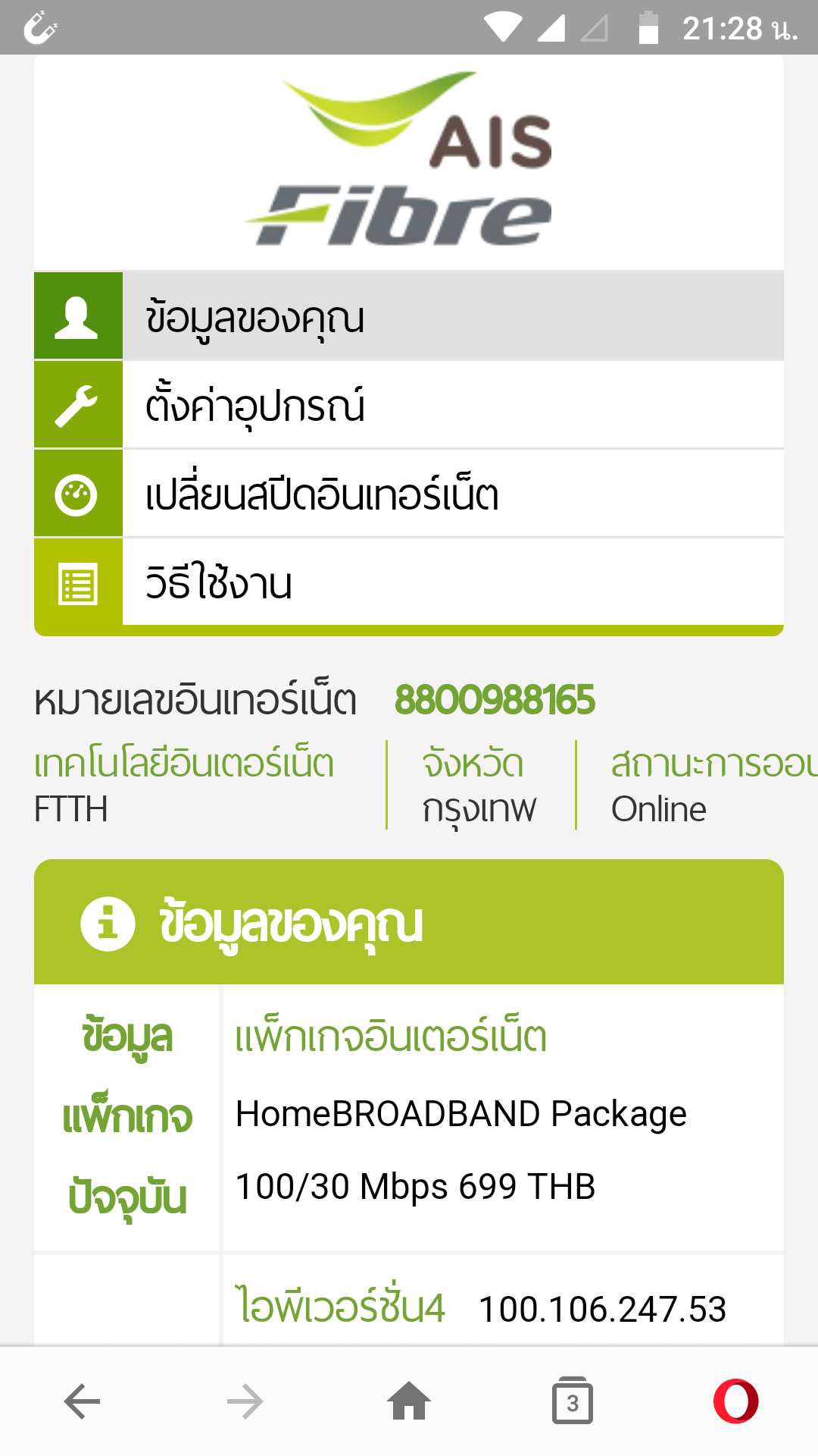ต้องการเปลี่ยนโปร ais fibre
