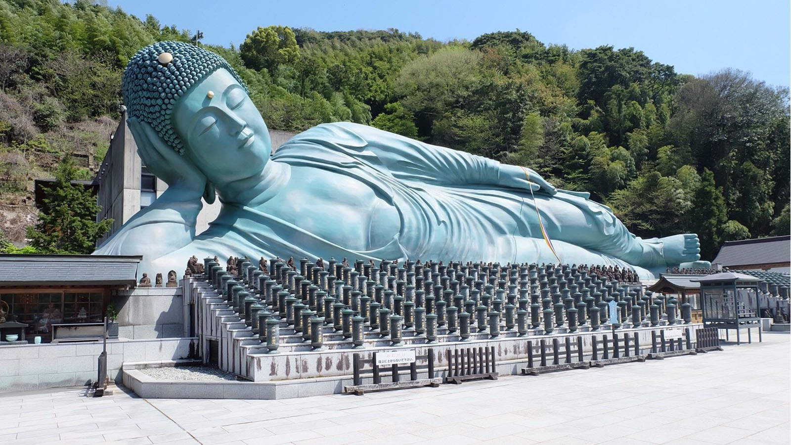เราไปไหว้พระกันก่อน เพื่อความเป็นศิริมงคลของการเดินทาง วัด Nanzō-in Temple สามารถเอารถไปจอดไว้หน้าวัดได้เลย ภายในวัดค่อนข้างสงบ เป็นธรรมชาติ ที่วัดแห่งนี้จะมีพระนอนที่ทำจากทองสัมฤทธิ์ พอไหว้เสร็จ แวะพักกิน soft cream กันก่อน แล้วค่อยปายต่อ…