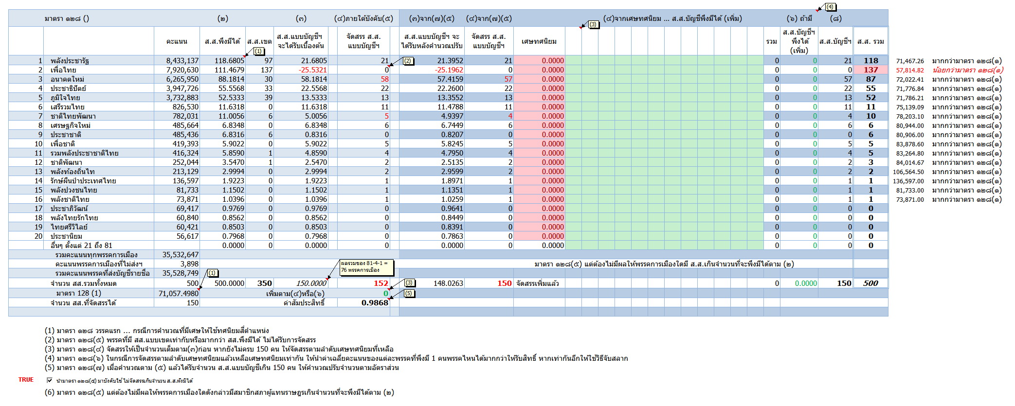 พรป.เลือกตั้ง มาตรา ๑๒๘(๗) ไม่สามารถจบได้ด้วยตัวมันเอง ต้องใช้การจัดสรรในเงื่อนไขถัดไปทุกครั้ง