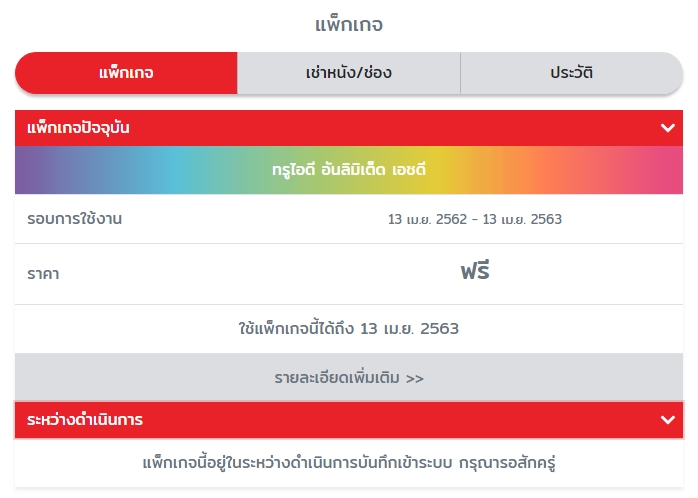 - เมื่อสิ้นสุดแพคเกจของ trueid ของข้าพเจ้าตามรูปที่แนบไว้ข้างบน