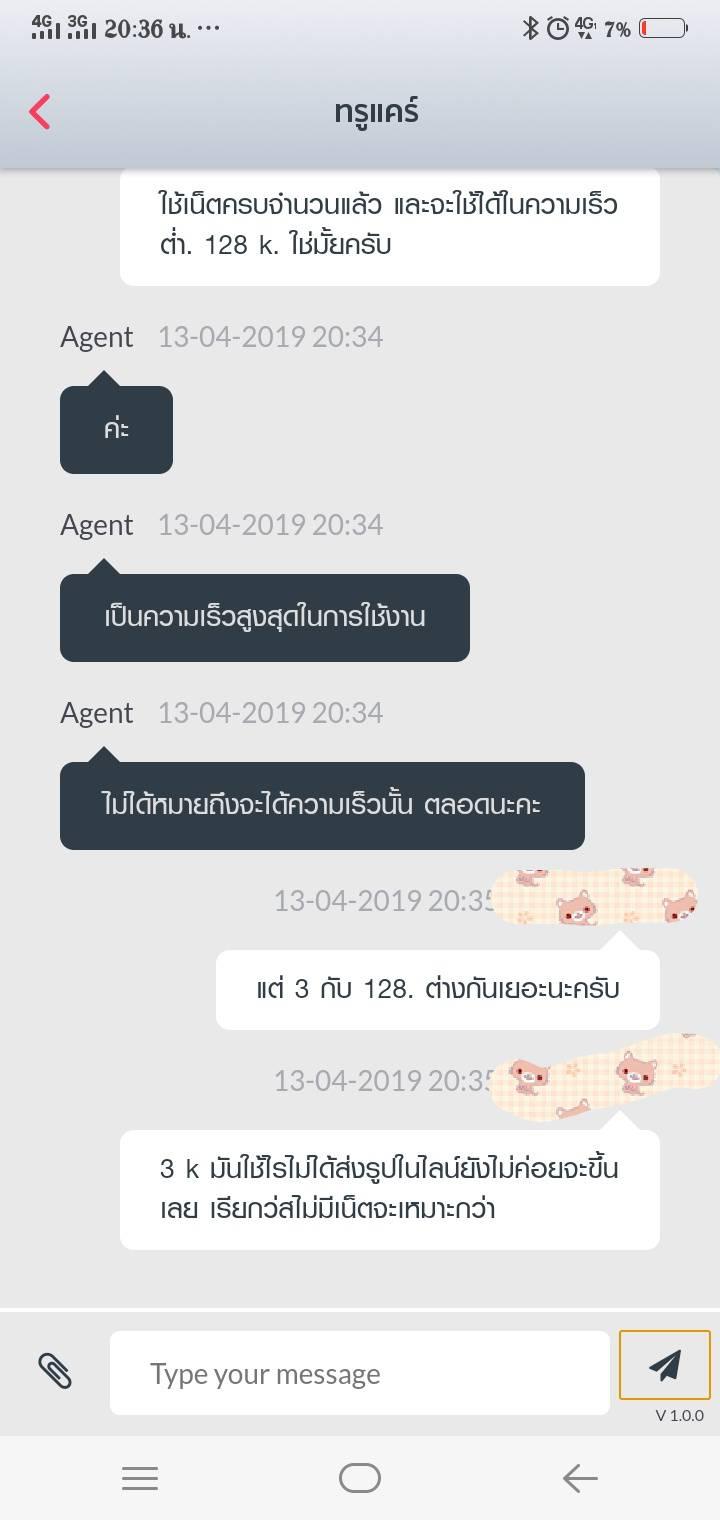 แต่ปัญหาคือโทรศัพท์ที่ใช้เป็นเบอร์หลักและต้องใช้งานอินเตอร์เน็ตตลอด(ส่งรูปงานทางไลน์)นั้นมีปัญหามาช้านาน เนื่องจากหลังจากแพ๊คเก็ตความเร็วสูงสุดหมด จะใช้ความเร็วลดลงได้ตามแพ๊คเก็ตคือ128 k แต่เมื่อใช้งานจริง ถ้ามา128 k จริงมันก้เพียงพอต่อการใช้งานสำหรับผมแล้ว แต่เอาเข้าจริงเน็ตช้ามากถึงมากที่สุด test speed มาไม่เกินเลขตัวเดียวตลอด พอนำเรื่องนี้ติดต่อที่ศูนย์บริการก็จะได้เน็ตความเร็วสูงสุดเพิ่มมาให้ใช้งาน เพราะเจ้าหน้าที่ก็แก้ไขไม่ได้พอหมดก็เป็นแบบเดิมวนอยู่ลูปนี้มานานแสนนานจนวันนี้ได้