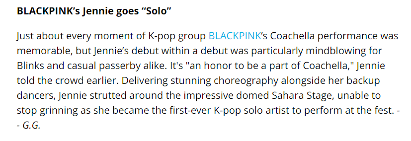 ซึ่งทำให้ เจนนี่เป็น K-Pop Solo Artist คนแรกที่ได้ขึ้นแสดงใน Coachella ไปด้วยเลย