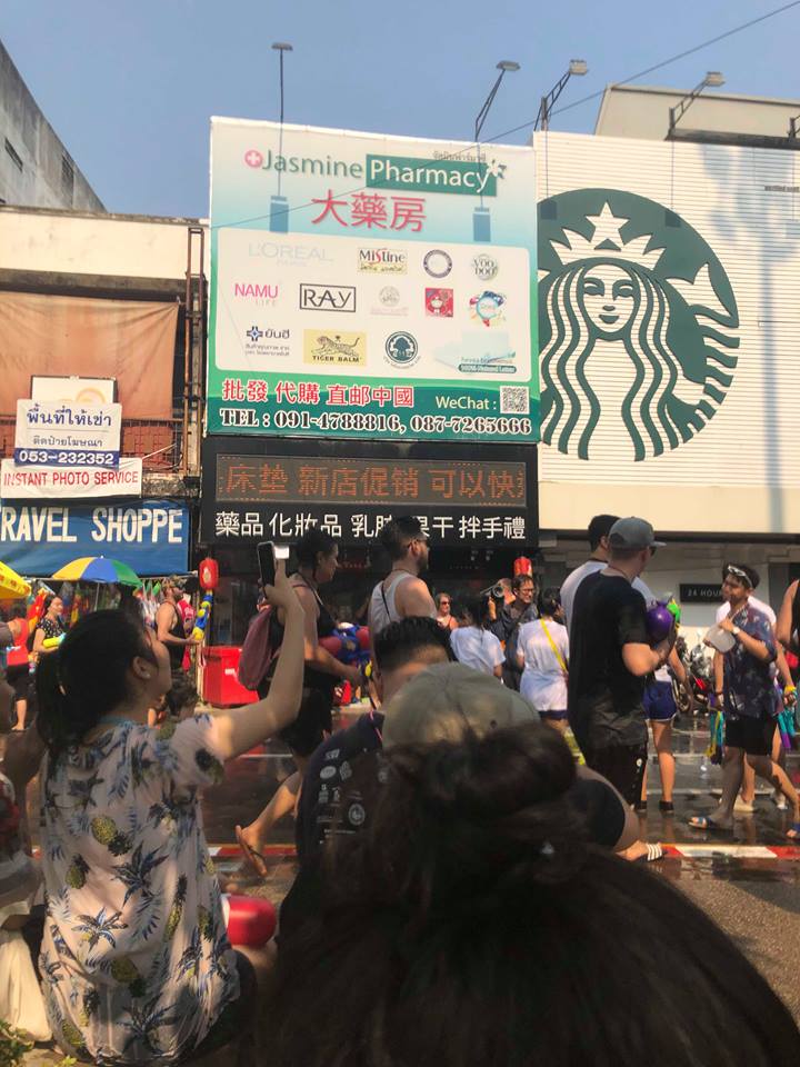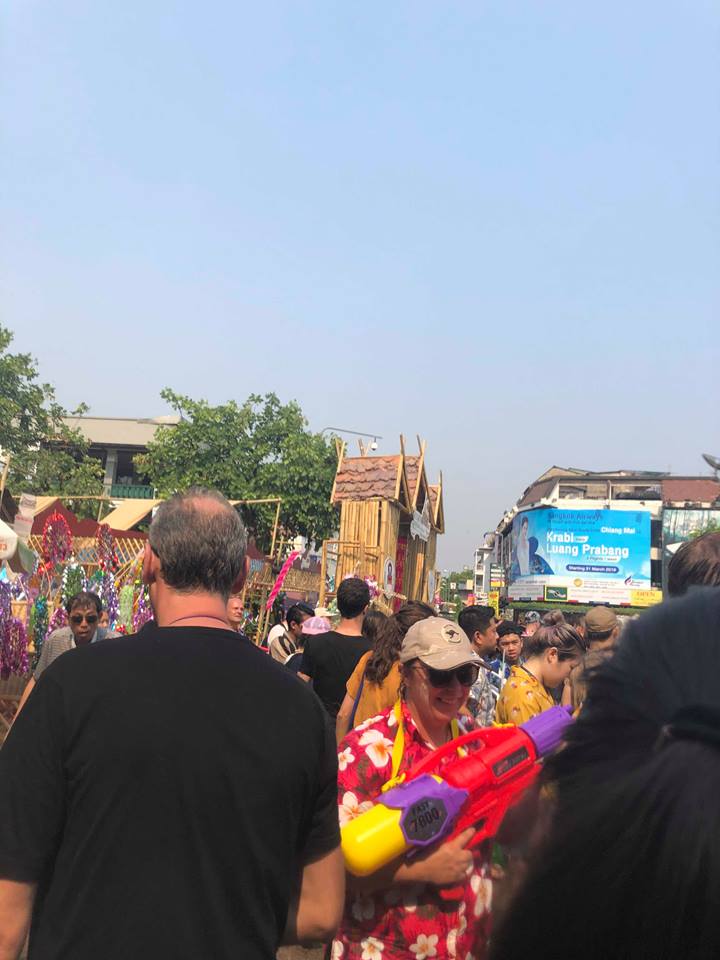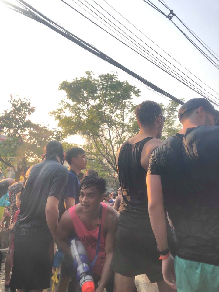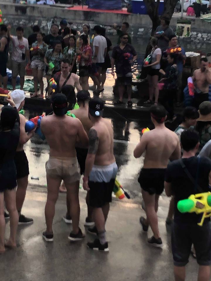 พอกินเสร็จจขก.ก็เดินเล่นน้ำสงกรานต์รอบๆ ประตูท่าแพ แล้วเดินไปตรงหน้าโรงแรมหนึ่งจำชื่อไม่ได้ แต่ว่าคนเล่นเยอะมาก