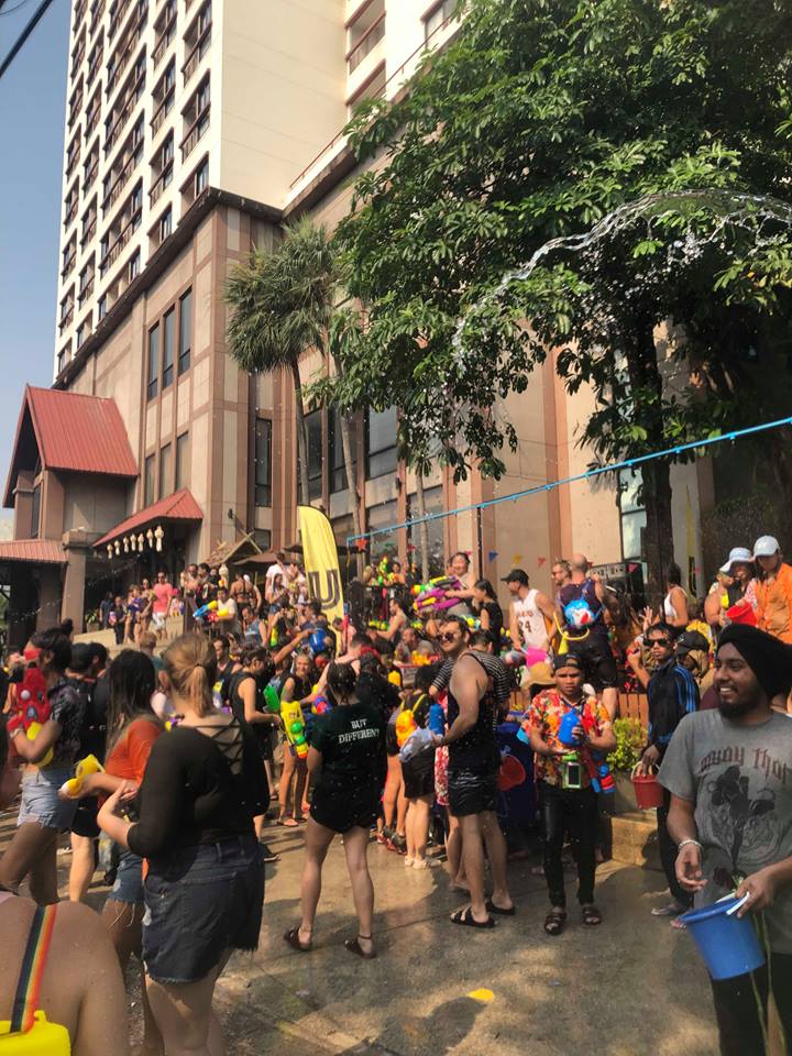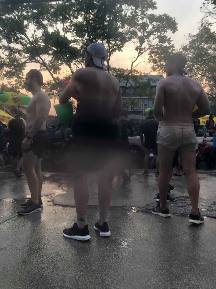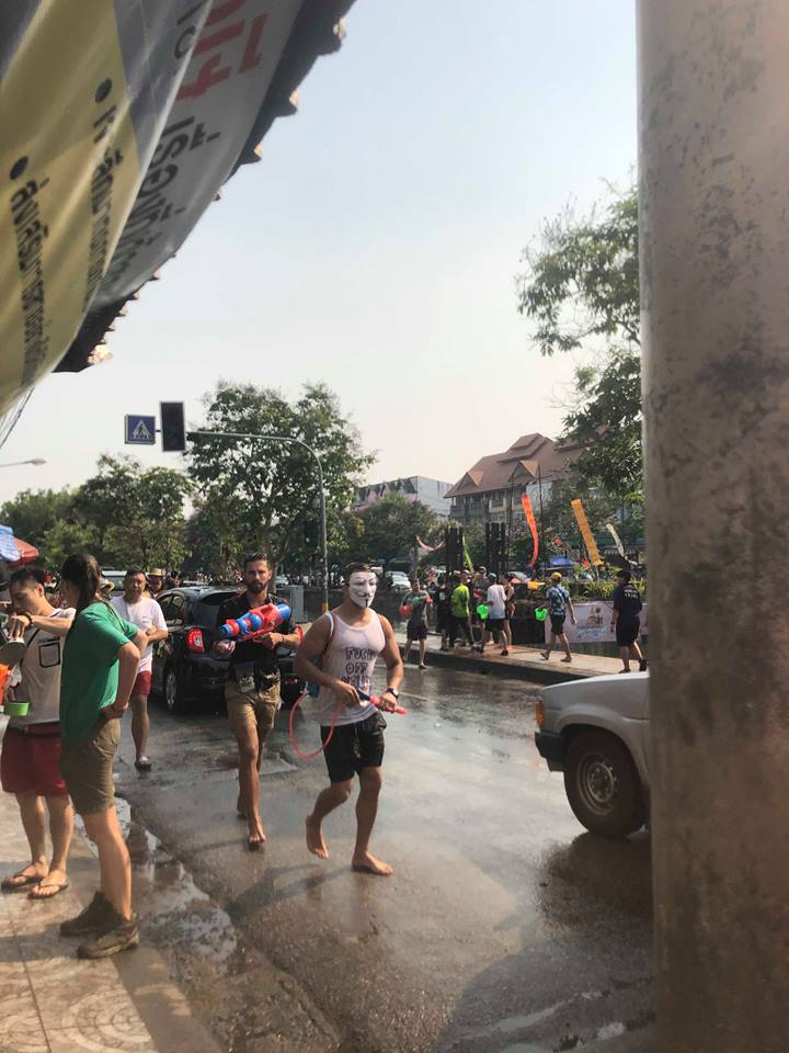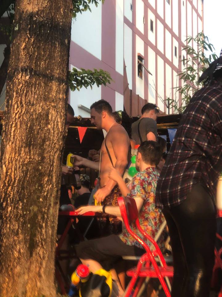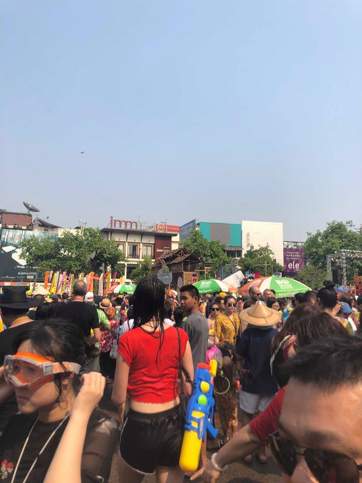 พอกินเสร็จจขก.ก็เดินเล่นน้ำสงกรานต์รอบๆ ประตูท่าแพ แล้วเดินไปตรงหน้าโรงแรมหนึ่งจำชื่อไม่ได้ แต่ว่าคนเล่นเยอะมาก