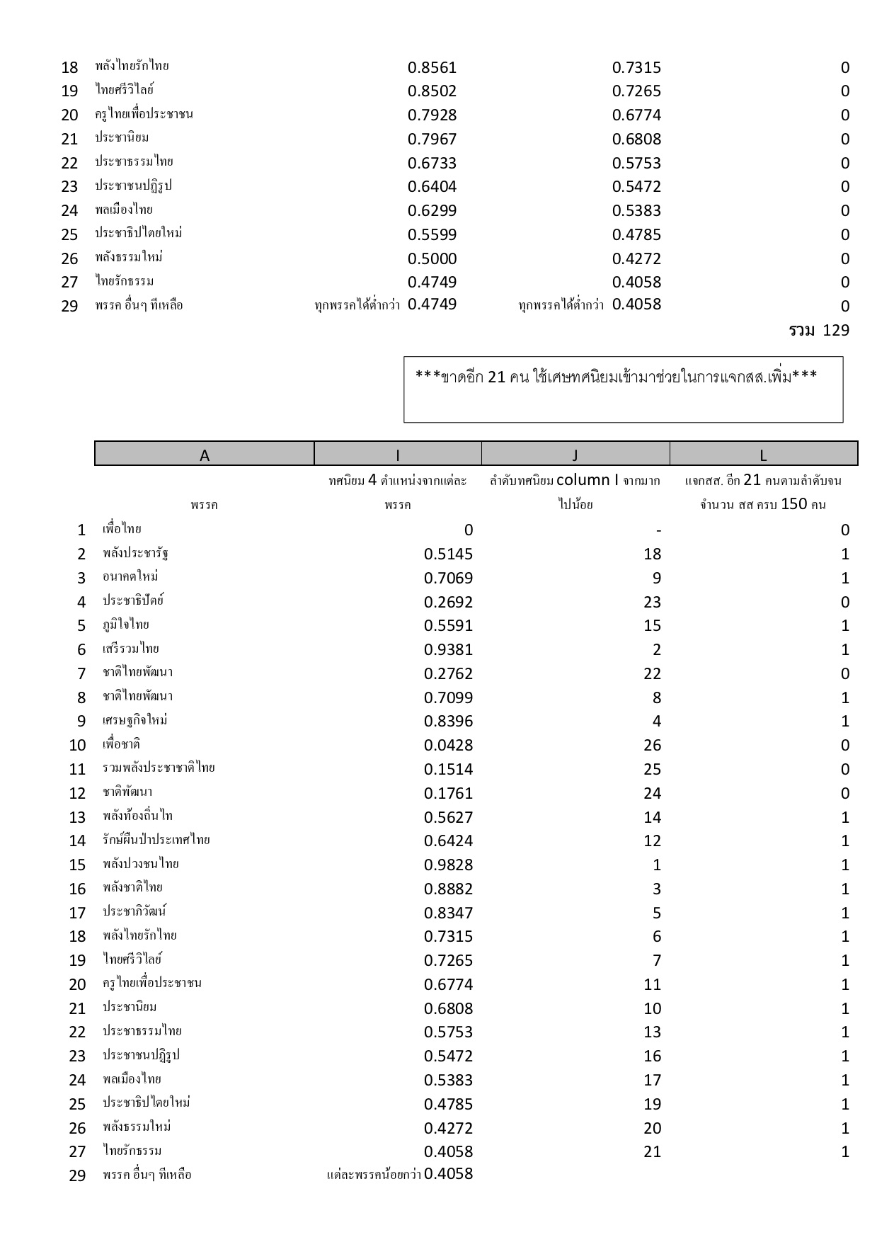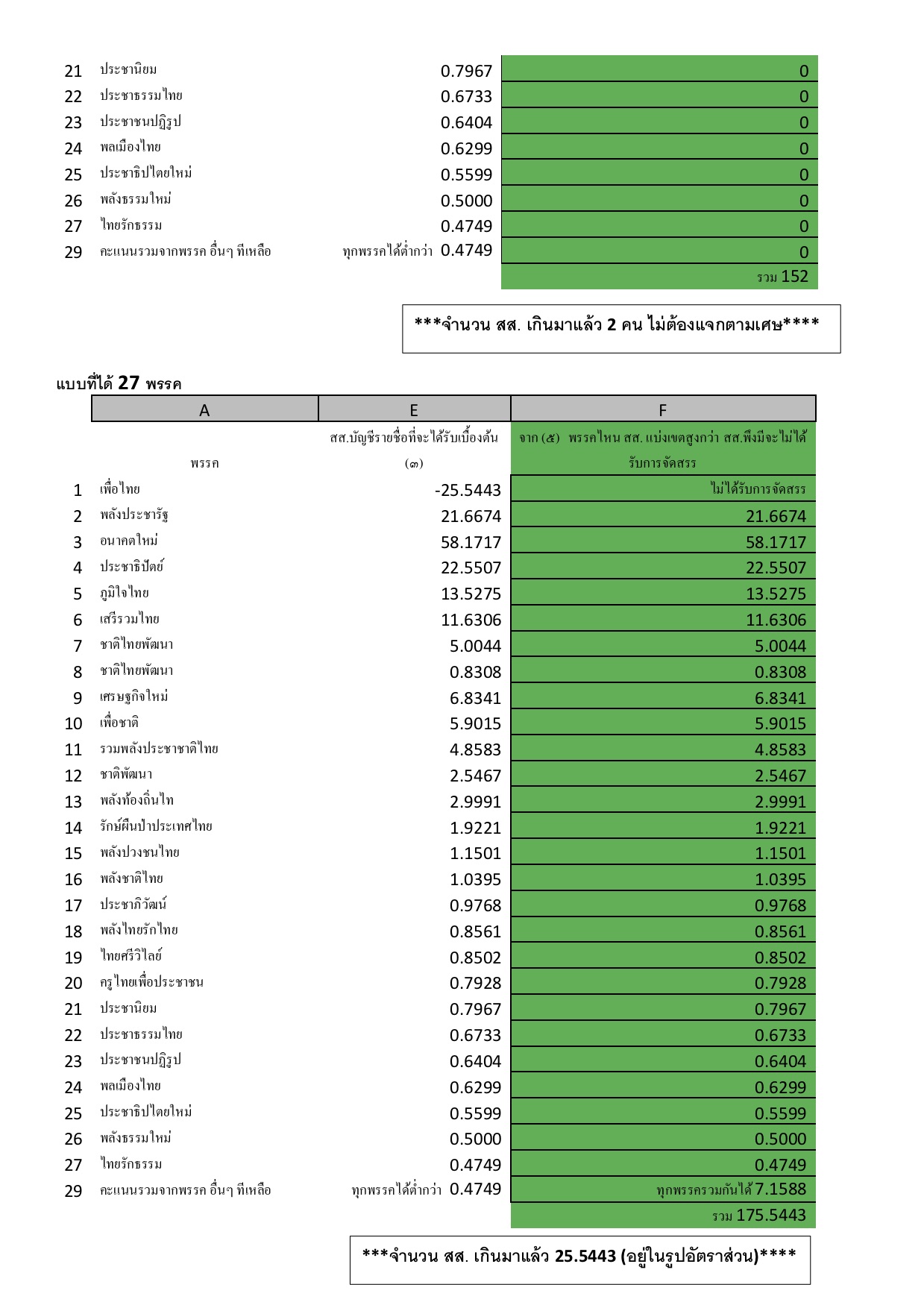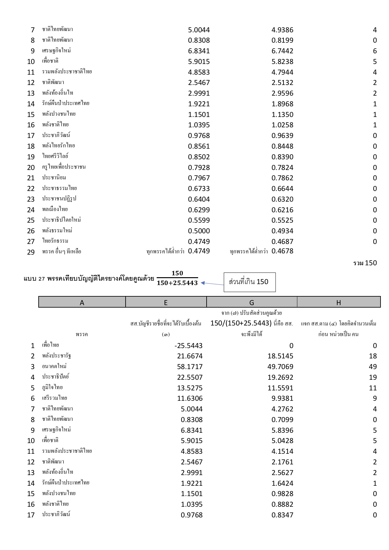 เปรียบเทียบการคำนวณสส.บัญชีรายชื่อ แบบ 16 พรรค และ 27 พรรค