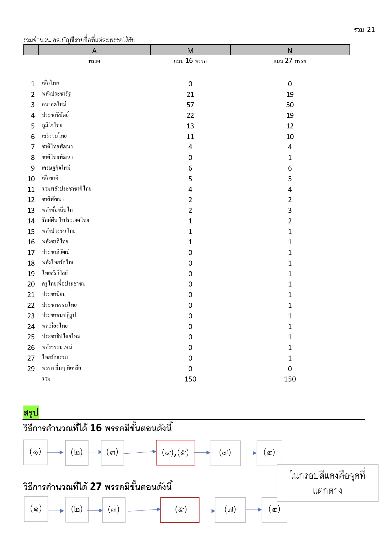1. แบบ 16 พรรค เพื่อนสมาชิกบอกว่าถูกแล้วครับ แต่แบบ 27 พรรคไม่ถูกนะครับ ความแตกต่างที่ชี้ไว้ด้านบนจึงตกไป