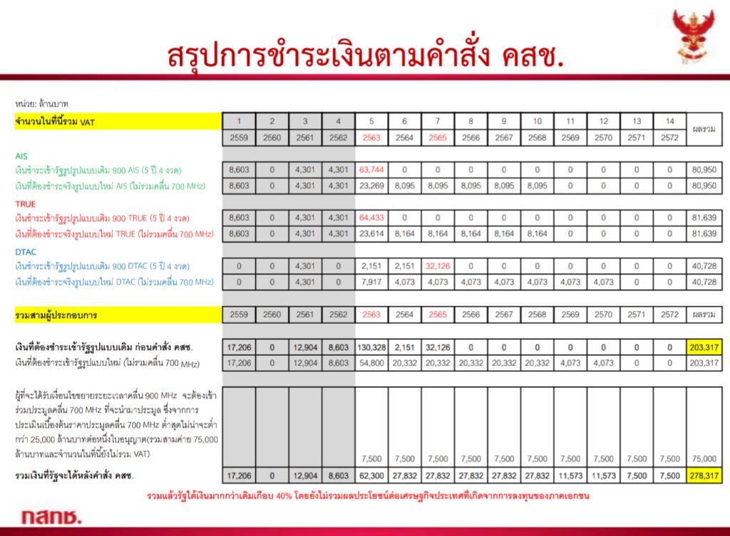 “หากค่ายใดค่ายหนึ่งไม่รับเงื่อนไขว่าต้องเข้ามารับการจัดสรรคลื่น 700 MHz ก็จะไม่สามารถรับสิทธิ์ขยายค่าคลื่น 900 MHz ได้ และคลื่น 700 MHz ที่เหลือก็จะนำมาจัดประมูลในแบบเดิม การจัดสรรคลื่นความถี่ครั้งนี้เป็นไปตาม ม. 44 ทำให้เราสามารถทำได้ทันในเดือน มิ.ย.นี้ ไม่ใช่การนั่งเคาะการประมูลแบบเดิม ถ้าทำอย่างนั้นเราทำไม่ทันอยู่แล้ว”