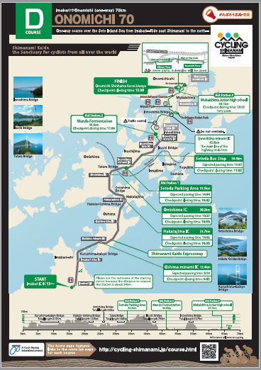 จขกท.เลือกสมัครใน Course D ระยะทาง 70 กม. จุดสตาร์ทที่เมือง Imabari > สิ้นสุดที่เมือง Onomichi ในเส้นทางนี้กำหน)ดผู้เข้าร่วมปั่นจักรยานไว้