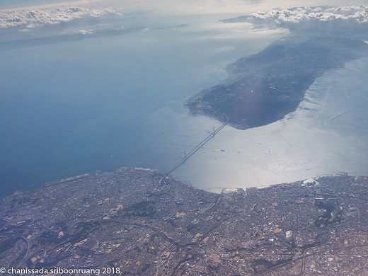 11 โมงครึ่ง ก็ยังพอมีเวลาให้ลุ้น ฮา… สรุปว่าไม่ได้วิ่งสู้ฟัดตามสไตล์จีจี้ทัวร์ ไปถึงสนามบินอิตามิ ประมาณ 10 โมง ใช้เวลาเช็คอินไม่นานก็เรียบร้อย ไฟลท์ ANA ที่จองไว้เป็นเครื่องบินแบบใบพัด เห็นแล้วนึกถึงเครื่องใบพัดบูทีคแอร์ไลน์ของไทยที่เคยนั่งจาก กทม.ไปสมุยเมื่อประมาณ 10 ปีก่อน ไฟลท์นี้ผู้โดยสารเต็มทุกที่นั่งและด้วยความที่มาเช็คอินช้าและไม่สามารถทำเช็คอินออนไลน์ได้ จึงทำให้จขกท.ได้ที่นั่ง 2 ที่ท้ายสุด ซึ่งก็ดีค่ะเพราะเราจะได้รับกลิ่นขนมที่น้องๆ แอร์อุ่นเตรียมเสริ์ฟลูกค้าอย่างใกล้ชิด การเดินทางไปสนามบิน Matsuyama ใช้เวลาบิน 50 นาที ระหว่างทางก็ชมวิวไปได้เรื่อยๆ ตั้งแต่ Kobe ยาวลงมาจนถึง Onomichi มองเห็นสะพาน Shimanami Kaido อยู่ลิบๆ ตั้งแต่มาถึงก็เพิ่งจะได้ควักกล้องมากดชัตเตอร์รัวๆ ก็ตอนนี้แหละ! ไม่นานก็ลงจอดที่สนามบิน Matsuyama เมืองนี้อยู่ห่างจากเมือง Imabari ประมาณ 40 กม. อยู่ในเขตจังหวัด Ehime เช่นเดียวกัน