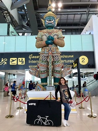 จนถึงวันเดินทาง การ check-in สัมภาระพร้อมจักรยานเป็นไปด้วยดีไม่มีอะไรน่าตื่นเต้น นอกจากประสบการณ์ใหม่ที่ว่าการโหลดกระเป๋าขนาดใหญ่กว่าปกติของสนามบินสุวรรณภูมิบ้านเรานั้นจะไม่สามารถเข้าสายพานปกติได้ เมื่อ check-in สัมภาระเรียบร้อยแล้วเจ้าของจะต้องนำสัมภาระไปโหลดที่ช่อง Y2 บริเวณก่อนถึงช่องทางผู้โดยสารขาออกนะคะ
