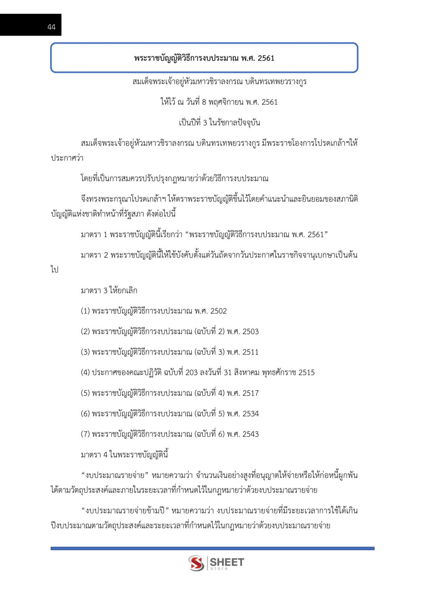 – แนวข้อสอบพระราชบัญญัติวิธีการงบประมาณ พ.ศ. 2561