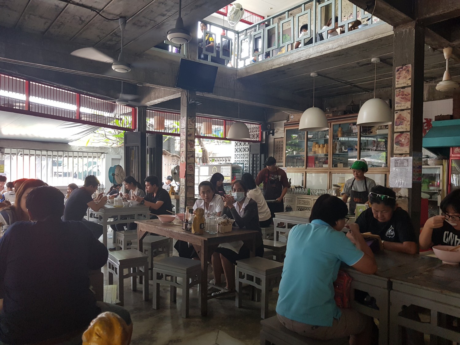 ร้านแบ่งออกเป็นสองฝั่ง ฝั่งนึงเป็นร้านขายก๋วยเตี๋ยว อีกฝั่งเป็นร้านขายขนมหวาน สามารถจอดรถได้ที่ลานจอดรถฝั่งขนมหวาน