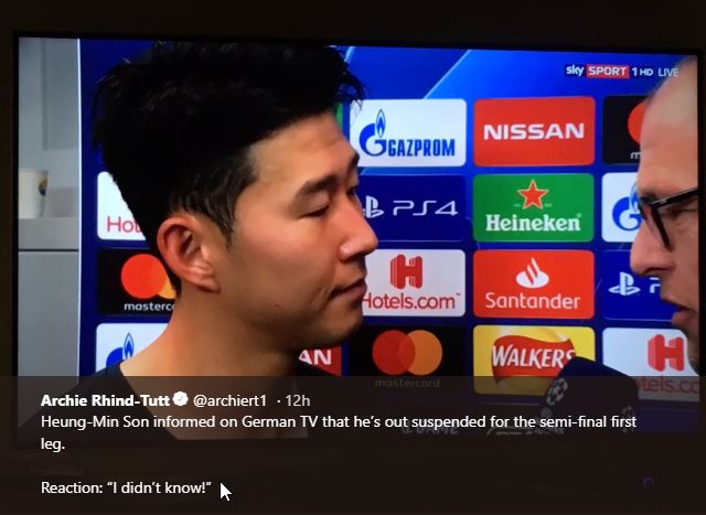Son ไม่รู้ว่าตัวเองจะถูกแบน เจอ Ajax นัดแรก