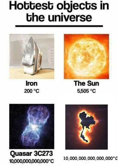ถ้าไม่มี ตอนนี้สิ่งที่ร้อนที่สุดที่เราค้นพบมีอุณหภูมิเท่าไหร่ครับ