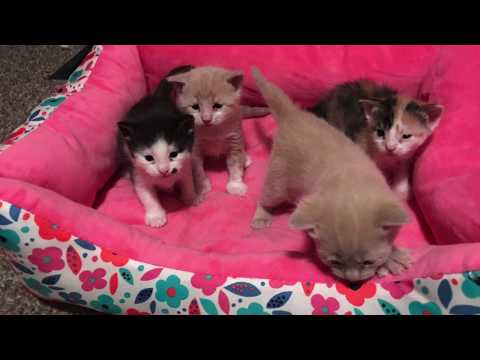 แม่แมวดูแลลูกๆ อยู่ในกรงตลอดทั้งสัปดาห์ จนกระทั่งวันที่พวกมันสามารถคลานออกมาด้วยตัวเองได้ ขณะเดียวกัน Roxie มีความสุขมากที่ได้รับการช่วยเหลือจาก Katrina