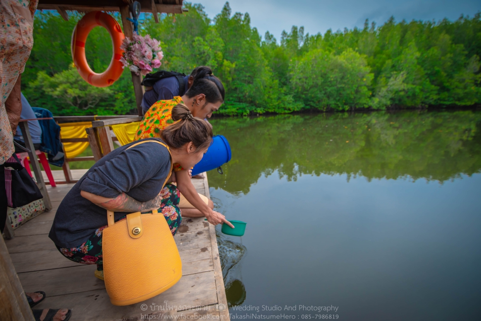 พอลงแพไปสักพัก เราก็ได้ปล่อยลูกปูตัวเล็กๆ ที่เรากำลังจะกินมันในภายหน้า 5555 ลงสู่ท้องทะเล