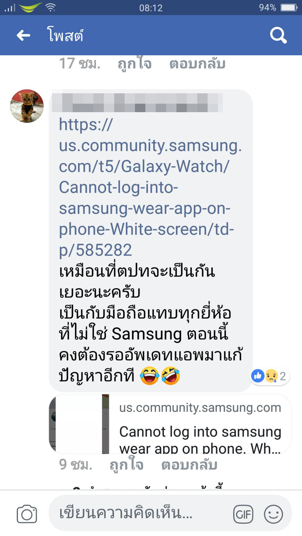 สืบเนื่องจาก 2 วันที่แล้ว ตั้งแต่วันที่ 17-18 เมษายน 62 เริ่มมีผู้ใช้จำนวนมาก ประสพปัญหากับการที่ไม่สามาถ login account sumsung ในหน้า app galaxy ware แต่สามารถเชื่อมต่อกับนาฬิกาได้ปกติ ทำให้ไม่สามารถโหลด app โหลด หน้าจอ update อะไรได้ แต่กับ app sumsung health สามารถ login ได้ปกติ ปัญหานี้พบเจอกับมือถือที่ไม่ใช่ยี่ห้อซัมซุง เกือบทุกรุ่น ซึ่งถ้าใีครมีปัญหา ไม่ต้องไปถาม ศูนย์ หรอกครับ เพราะเค้าจะตอบมาสั้นๆว่า มือถือซัมซุงใช้งานได้ปกติ ซึ่งเป็นคำตอบที่ ไม่ได้ช่วยอะไรเลย ทั้งคนใช้ oppo ฮัวเว่ย และยี่ห้ออื่นๆตอนนี้ หัวเสียกันไปก่อน ท่านใด่ที่คิดจะซื้อ galaxy watch ตอนนี้ แล้วมือถือ ไม่ใช่ซัมซุง โปรดรอไปก่อน เพราะเอามาหัวเสียหัวร้อนแน่ๆครับ ต่างประเทศก็ตั้งกระทู้ คำถามที่หน้าเว็บ sumsung en เหมือนกัน เจอปัญหาแบบเดียวกันหมด คงได้แต่รอ รอ รอ ทาง sumsung ปล่อย update app มาแก้ให้เอง ตอนนี้ ทำใจรอไปอย่างเด่ียว เพราะก่อนวันที่ 17 เมาษ ยังสามารถใข้งานได้ปกติ ทุกอย่าง จะเข้าออก login ss account ได้ตลอด ใครเจอปัญหานี้ ไม่ต้องไปล้างเครื่องโทรศัพท์ ตั้งค่าอะไรใหม่นะครับ ไม่ใช่เพราะมือถือของคุณมีปัญหานะครับ
