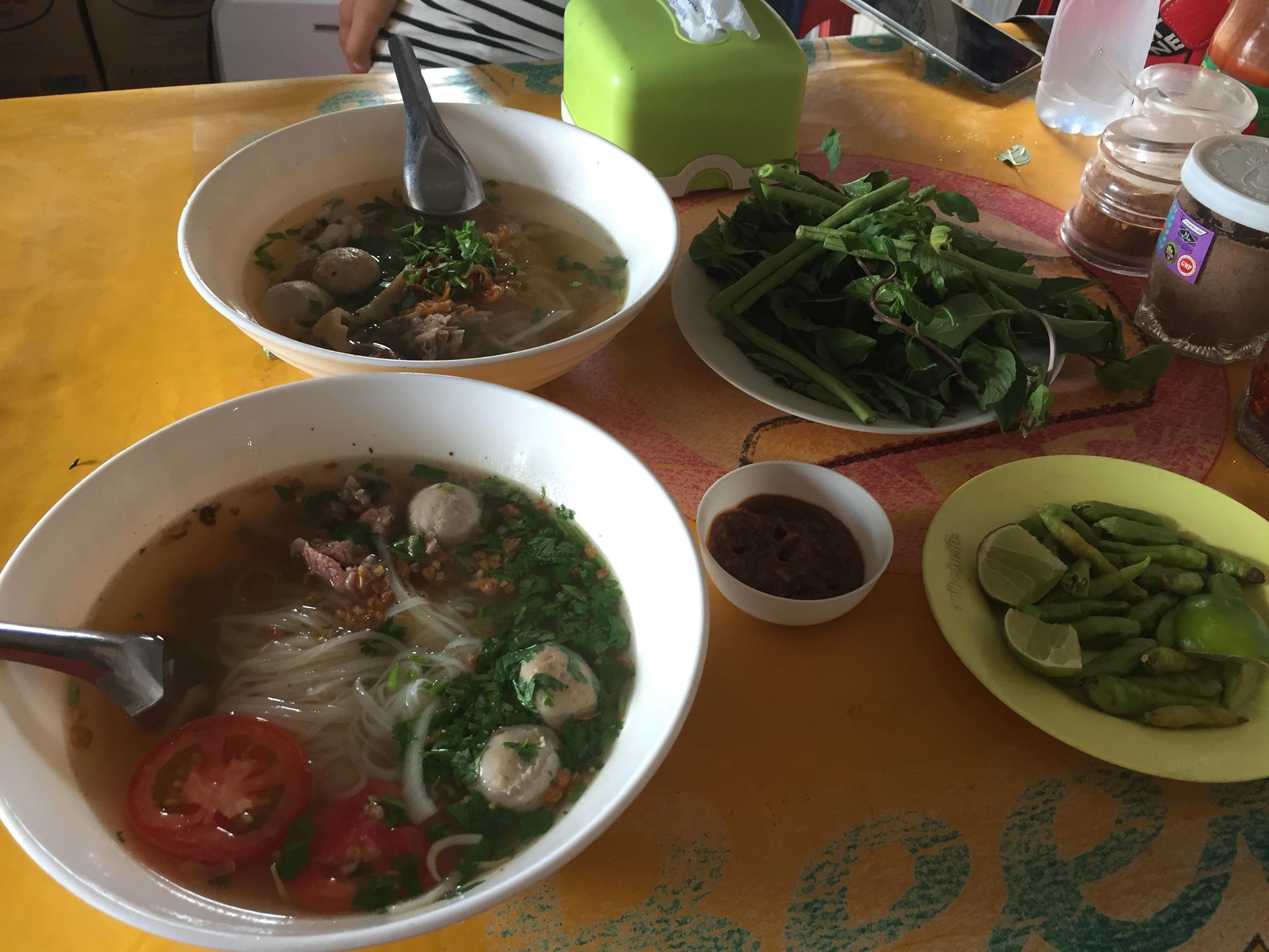 วันที่2 14เมษา หลังจากตื่นนอนประมาณ 10โมง ผมก็ได้ถามแฟนว่า ค่าห้องอะไรใครจ่าย แฟนก็บอกว่าพี่จ่ายให้ ประมาณ400บาท เออผมก็ว่าราคาปกติดีนะมีครบทุกอย่างเลย จากนั้นเราก็อาบน้ำแต่งตัวไปหาอะไรกินกัน เราได้ไปหาซื้อซิมใส่โทรศัพท์ก่อนซึ่งไม่มีเน็ตหรือโทรออกได้เลย ไปเจอร้านขายของร้านนึง ลุงแกก็จัดการทำทุกอย่างให้ ทั้งเปิดเบอร์แต่ว่าต้องเป็นเจ้าของ ผมเลยให้แฟนผมเป็นคนคุยทั้ง2เบอร์ 5555 จากนั้นก็เจอร้านอาหาร ผมเลยถามว่ามีเฝอมั้ย ก็คือก๋วยเตี๋ยวทางบ้านเรานั้นเอง ซึ่งผมอยากกินมาก เขาก็บอกว่ามี ส่วนแฟนผมก็กินข้าวเปียก หรือก๋วยจั๊บยวนนั่นเอง อย่างที่มาตั้งคือตะกร้าผักกับน้ำจิ้มเฝอ