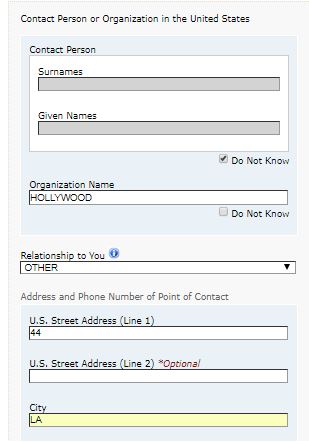 2. Contact person or Organization name in the United States