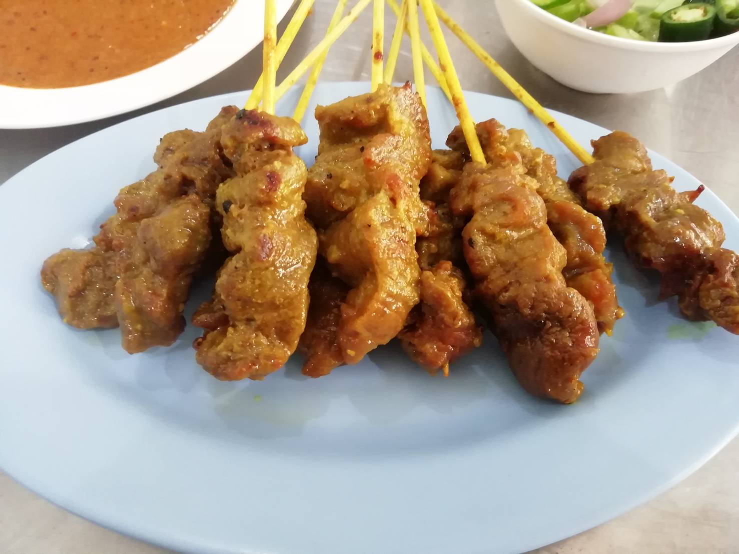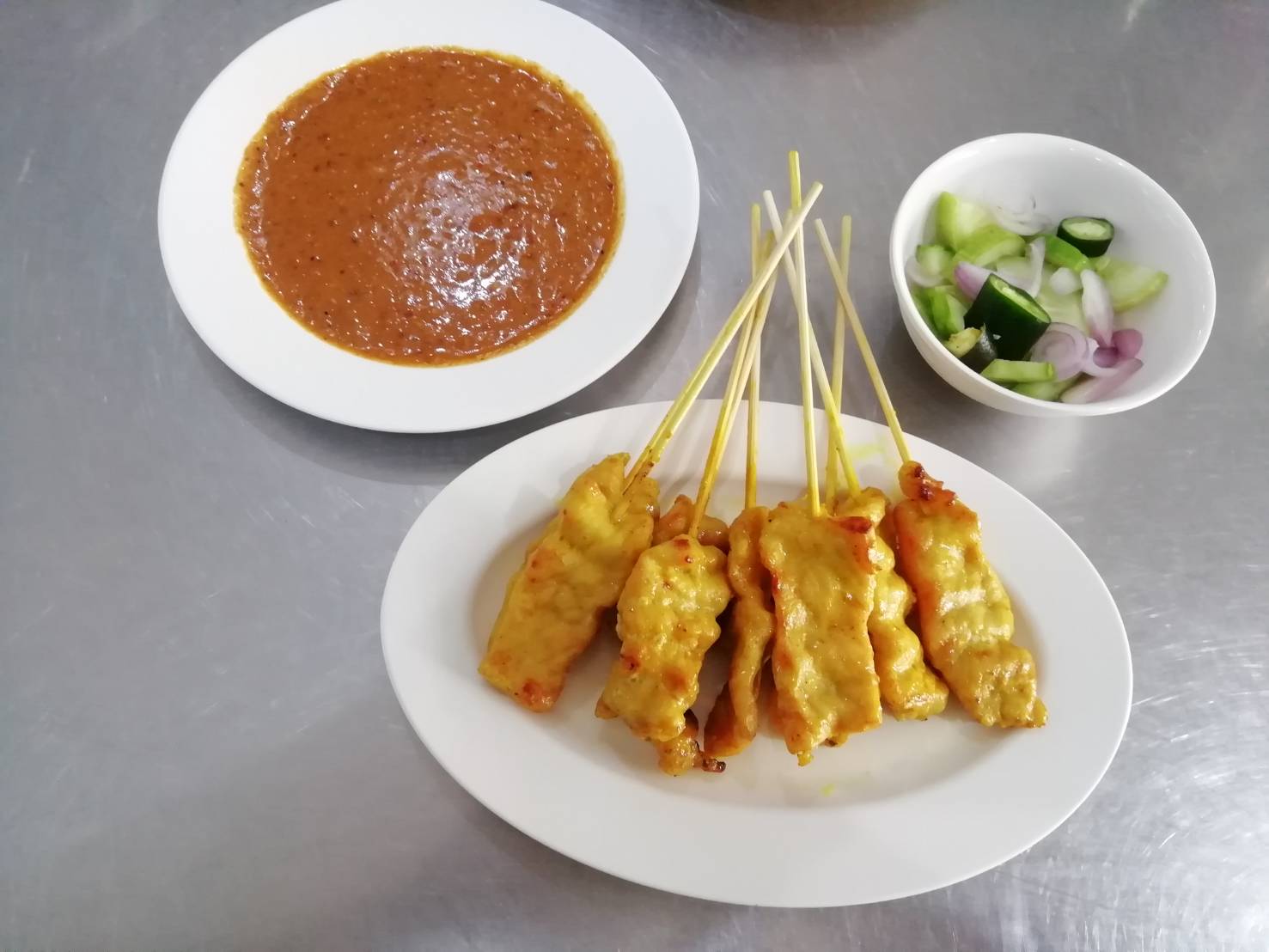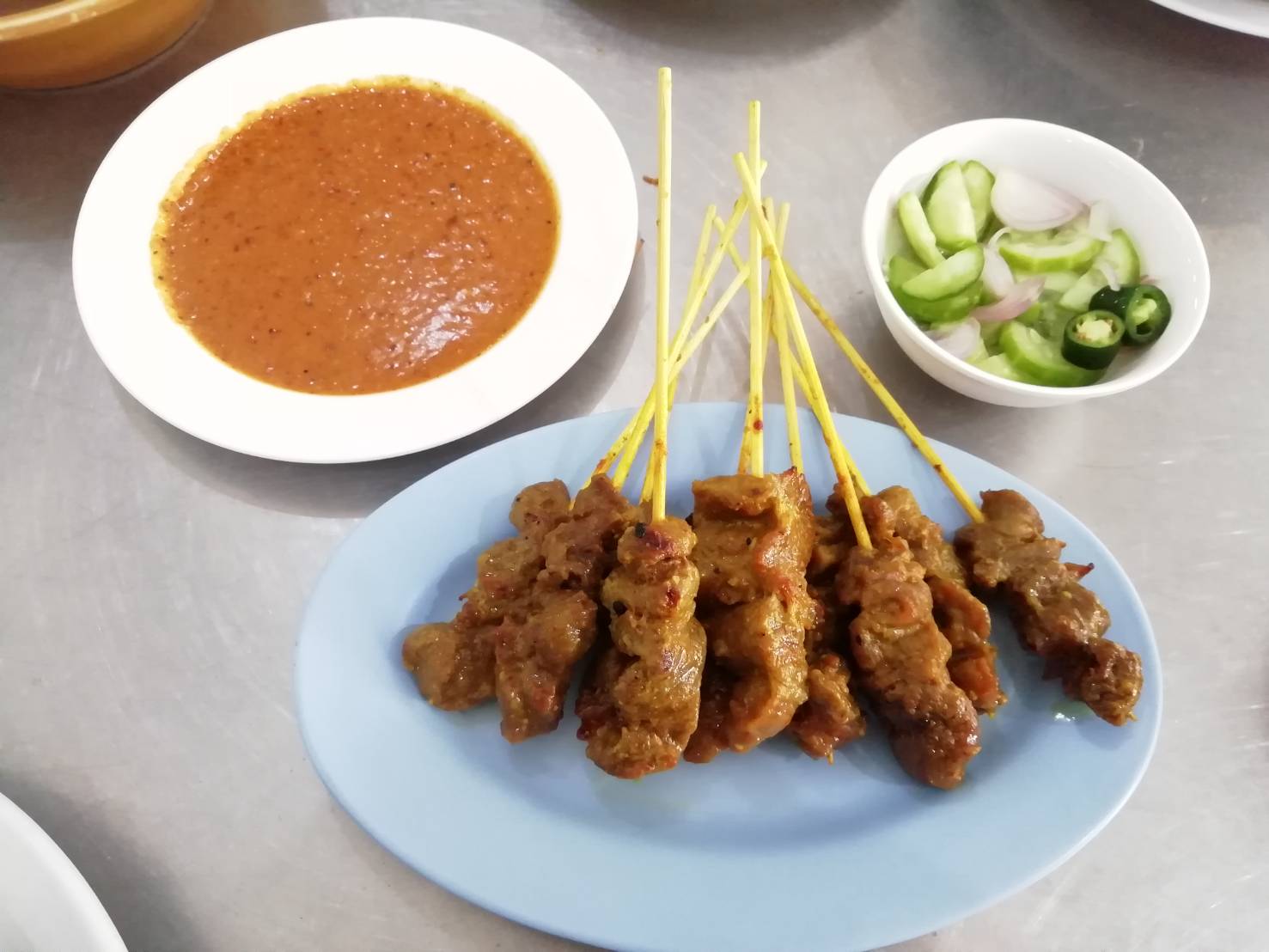 สะเต๊ะกินไม่จิ้มอะไรก็อร่อย น้ำจิ้มถั่วไม่ได้จิ้มเลย กินแต่อาจาดแก้เลี่ยน