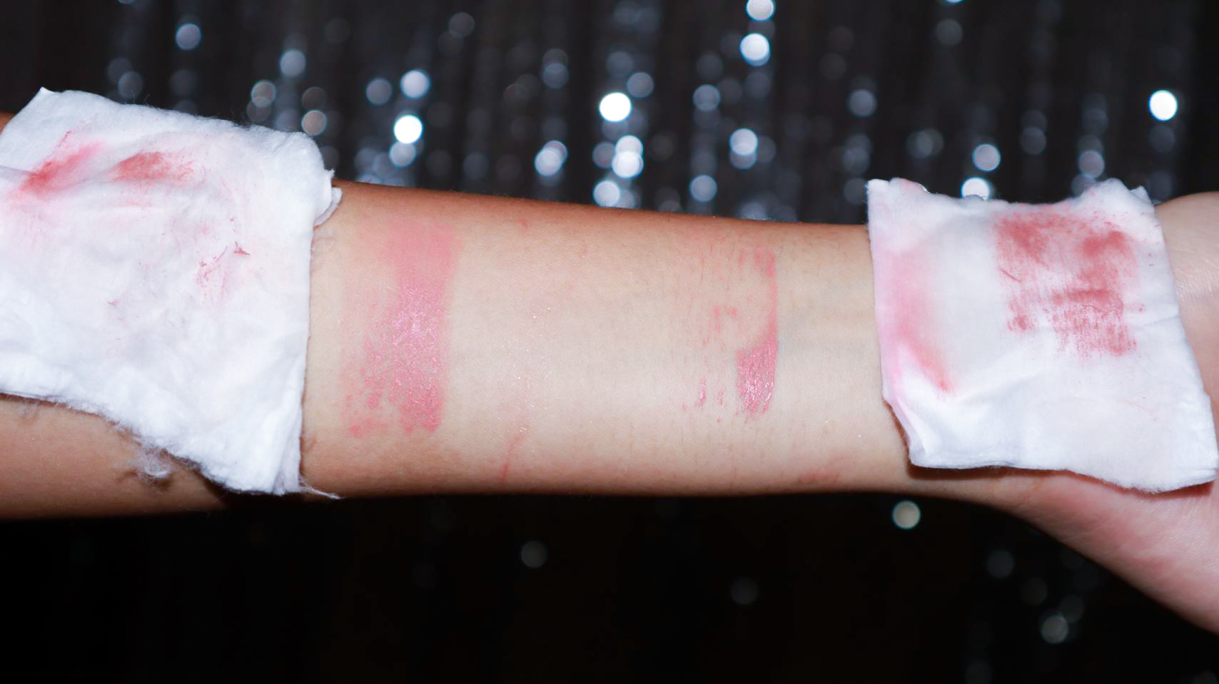 จะเห็นได้อย่างชัดเจนเลยนะคะว่าฝั่งซ้ายยังมีเครื่องสำอางติดอยู่มากกว่าฝั่งขวา