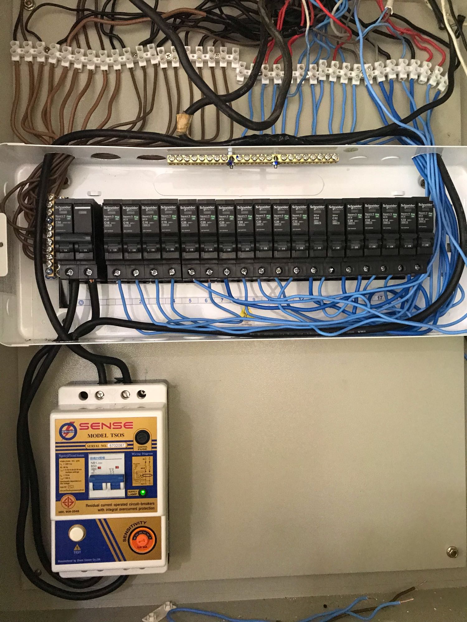 3.ลองเทสที่เต้าเสียบภายในบ้าน เอาปลายสายแตะกันเพื่อให้ไฟสปารค์ ตัวที่ตัดคือลูกเซอร์กิจ 16A ตัวsenไม่ตัด ช่างบอกปกติ