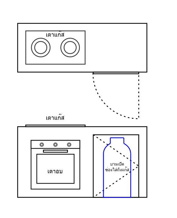 ครัวไทย ถ้าผมวาง เตาแก๊ส ถังแก๊ส เตาอบ แบบนี้จะปลอดภัยไหมครับ