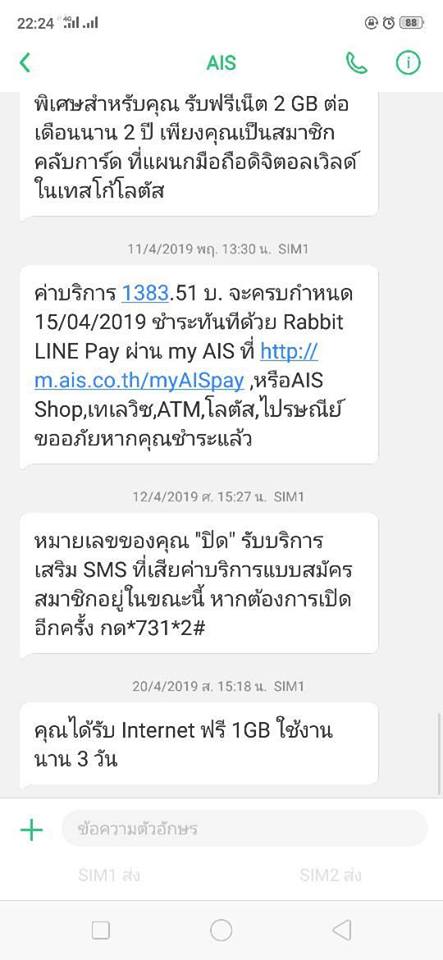 หลานใช้ซิมค่ายเขียว ถูกเก็บค่า sms หลายร้อยทุกเดือน