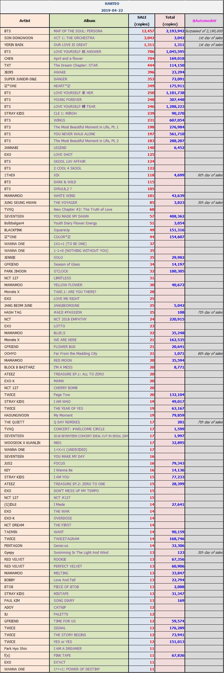 ยอดซื้ออัลบั้มจากชาร์ต HANTEO 22 เมษายน 2562 + BLACKPINK & TWICE Now