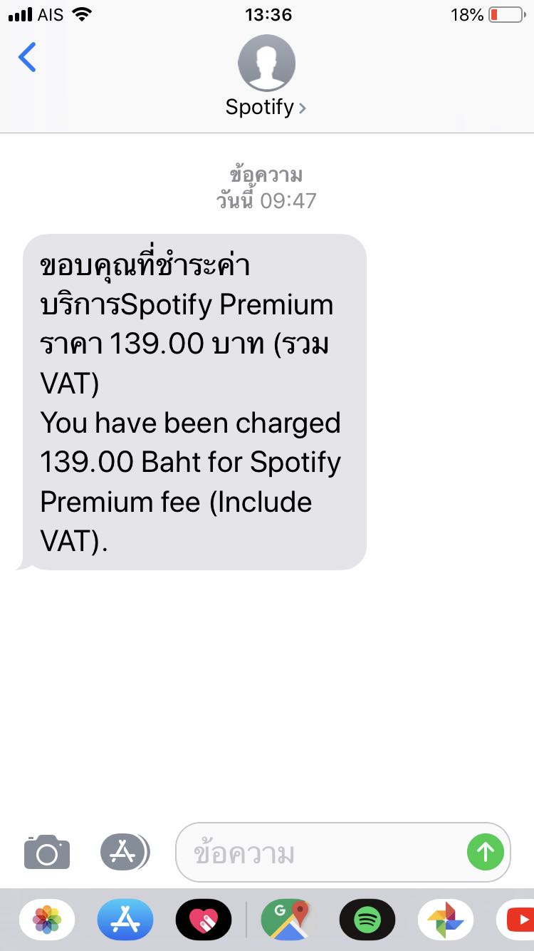 ของผมสมัคร spotifypremium แต่ไม่เป็นไปตามเงื่อนไข โดนหลอกรึเนี่ย?? ทั้งๆที่จ่ายค่าบริการผ่านหมายเลขโทรศัพท์ ค่าย AIS รายเดือน