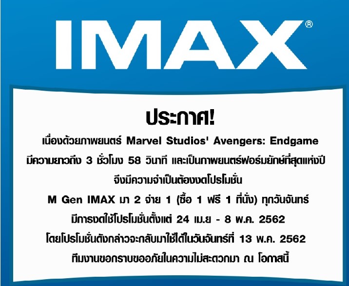 Endgame ฉาย IMAX ถึงวันไหนครับ?