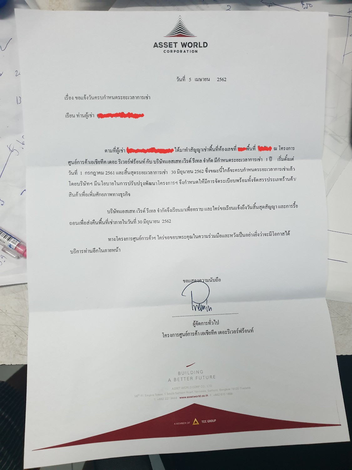 สอบถามผู้รู้คะ ทุกวันนี้ขายของอยู่ในเอเชียทีค แต่อยู่ๆ พอใกล้จะครบกำหนดสัญญา ได้รับจดหมายขอคืนพื้นที่ แต่ร้านอื่นในบริเวณใกล้เคียงได้ต่อสัญญา และเราก็มั่นใจ ว่าเราไม่เคยทำอะไรผิดกฎระเบียบ จ่ายค่าเช่าตรงเวลา และให้ความร่วมมือด้วยดีเสมอมา เราจะทำอย่างไรได้บ้างคะ ควรไปขอความช่วยเหลือจากหน่วยงานได้บ้างคะ กลุ้มใจมากๆเลยคะ เพราะเพิ่งลงสต็อคสินค้า และปรับปรุงร้านไป แต่อยู่ๆ ได้รับแจ้งแบบนี้ มืดแปดด้านไปหมดแล้วคะ เครียดจริงๆ 😓😓😓
