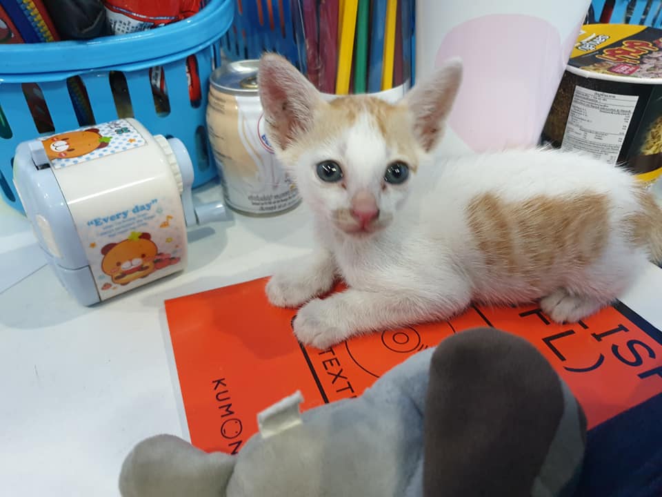 ต้องรื้อห้องน้ำห้องที่ปิดหามัน เจอตัวตอนแรก ขู่เรา ฟ่อ ฟ่อ ไม่กล้าจับเหมือนกัน แต่อาศัยจังหวะจับออกมา คงหิวด้วยกลัวด้วย ผอมกร่อง ลูกสาวกลับจากโรงเรียนมาเห็นขอเเม่มันให้เลี้ยง ตอนเเรกไม่อยากเลี้ยงเพราะมันขี้เยี่ยว เหม็นมาก แม่ไม่ชอบเป็นร้านขายของด้วย แต่ก็ใจอ่อนให้เลี้ยง มีเงื่อนไขเก็บขี้มันทุกวัน ก็เลี้ยงปล้ำกันมาอยู่ 2-3 วัน ก็โอเครตัวเดียว แต่มะเช้ามีเสียงเเมวมาจากที่เดิมอีกแล้ว ตัวพอกันเลย เมียผมไม่อยากให้เลี้ยงแล้วจะให้ปล่อยวัดแล้ว
