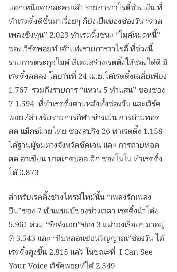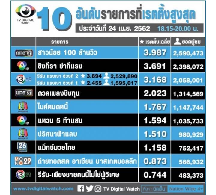 ลิ้งค์ข่าว : https://www.tvdigitalwatch.com/top10-rating-primetime24-april-62/