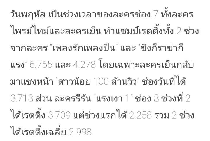 เรตติ้งวันพฤหัส : วันของละครช่อง7