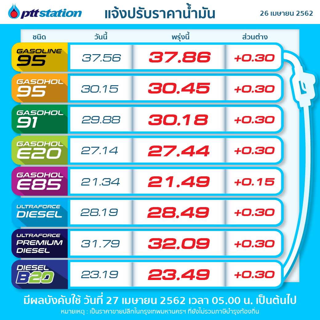 พรุ่งนี้ราคาน้ำมันขึ้นลิตรละ 30 สตางค์