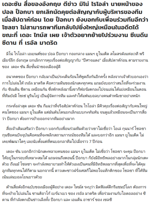 แต่ในตอนนี้วงในเผย ป๊อกแสดงวุฒิภาวะที่น่าผิดหวัง เป็นการแสดงออกที่ค่อนข้างจะชัดเจนแล้วว่า  ไม่อยากจะสวมเสื้อปีศาจแดงอีกต่อไป ด้วยสไตล์การเล่นที่เบื่อโลก เล่นฟุตบอลเดินแบบ ไม่วิ่งไม่ไล่ ไม่กระตุ้นทีม เปรียบเสมือนเหยียบย่ำจิตใจแฟนบอล กระทำย่ำยี-ทรพีชงชา สาดปัสสาวะลงบนพรมแมนเชสเตอร์ ยูไนเต็ด ที่เป็นดั่งอู่ข้าวอู่น้ำ ให้ป๊อกได้เบิกธนบัตรเงินแสน เงินล้านไปบำเรอตัวเอง โดยที่ไม่เคยนั่งเล่นเปียโน ไม่เล่นกับหมา