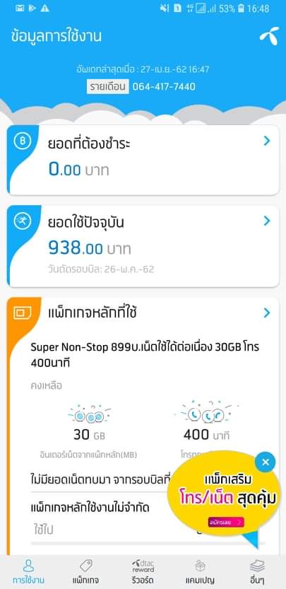 สอบถามยอดค้างชำระหน่อยครับ Dtac