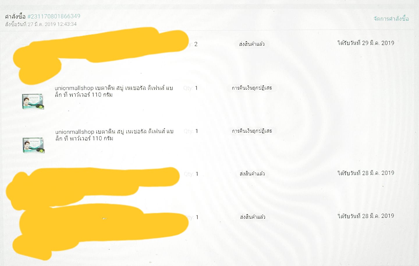 เรื่องเริ่มวันที่ 27 มีนาคม 2562 ครับ ผมสั่งซื้อสบู่พี่ติ๊กจาก LAZADA ร้านนี้เลยครับ