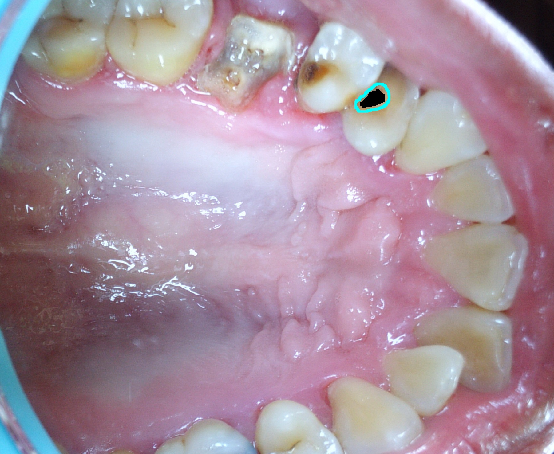 . ฟันของลุงนักอมน้ำเกลือในตำนาน ได้มีการผุเป็นรูเพิ่มอีกหนึ่งซี่ ต่อไปรูก็อาจจะขยายหรือค่อย ๆ แตกสลายไปเหมือนฟันกรามก็